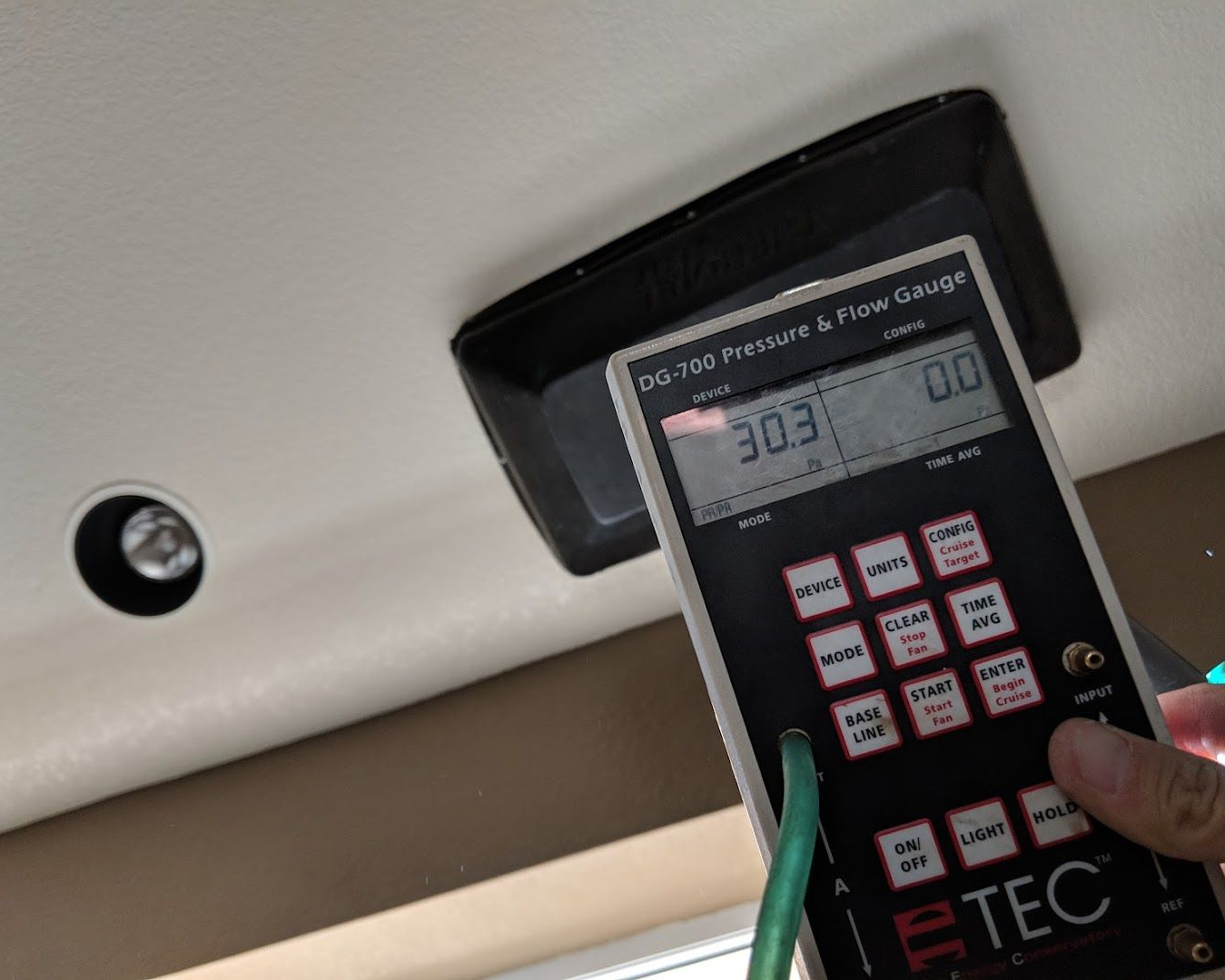 This includes blower door testing, duct leakage testing, airflow/static pressure evaluation, attic insulation inspection, and visual duct inspection.