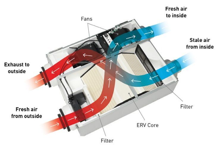 An ERV removes polluted indoor air and introduces clean fresh air through dedicated filtration. All while maintaining indoor temperature efficicently