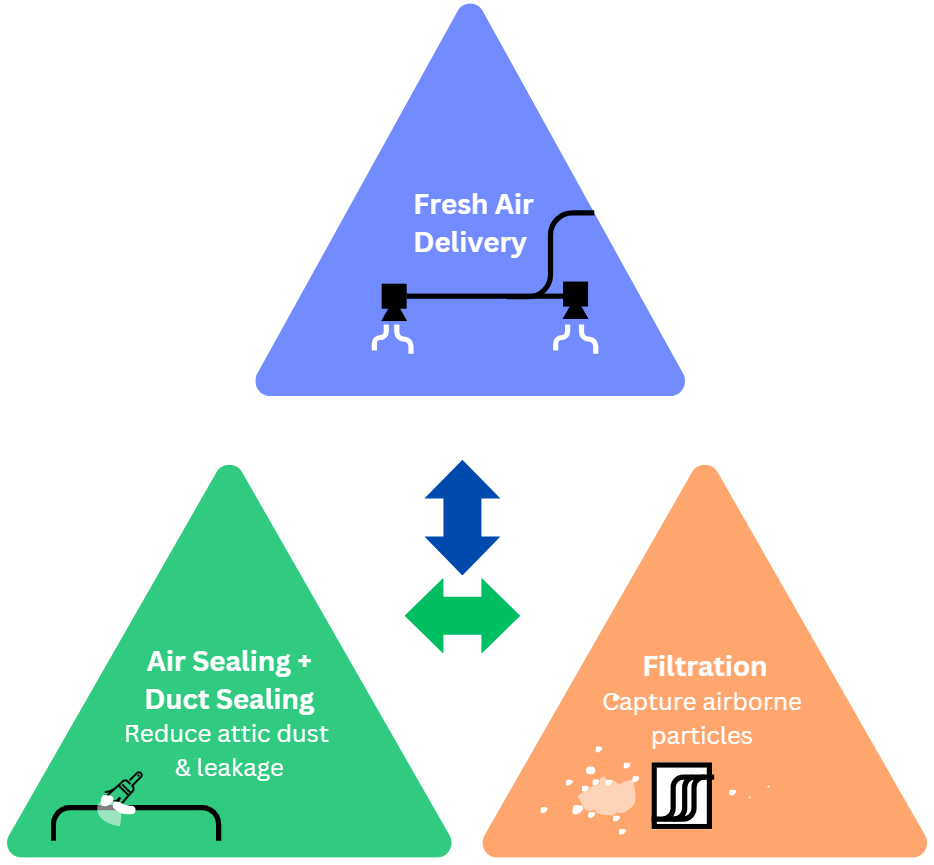 Indoor air quality improvements typically involve three strategies working together: